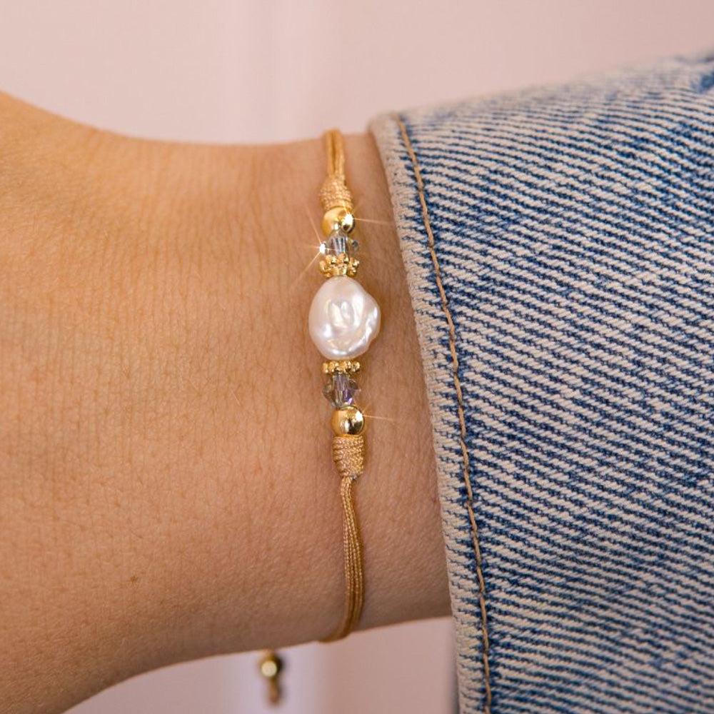Add Nacar Flower Creme Thread Pearl Bracelet to the cart