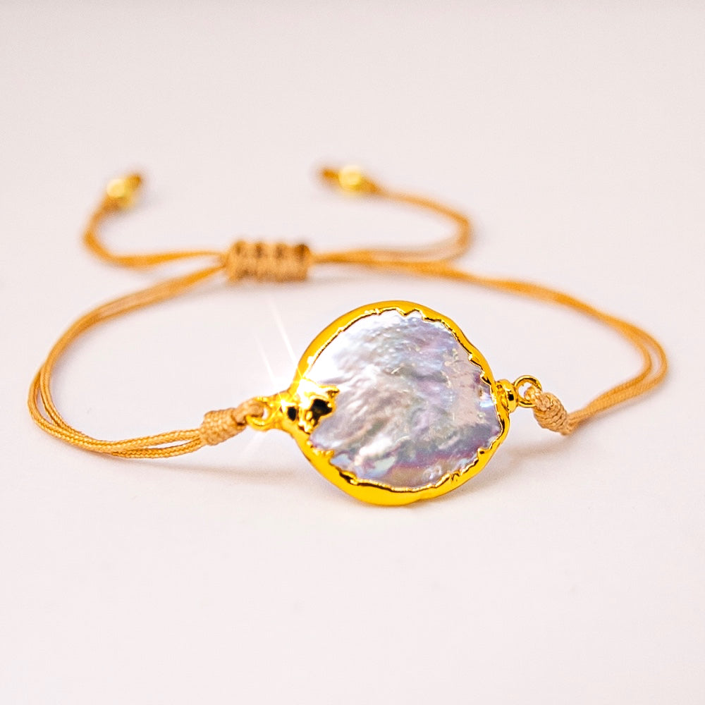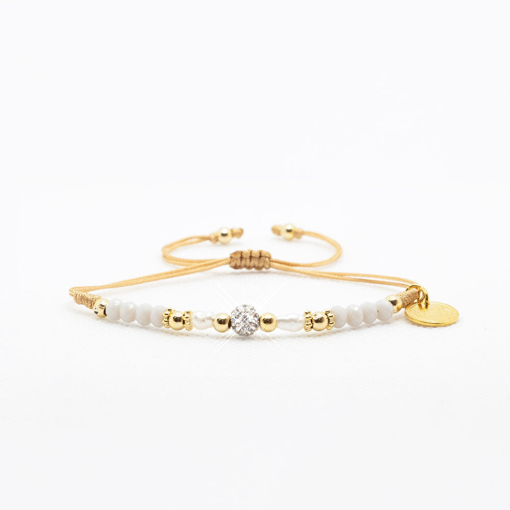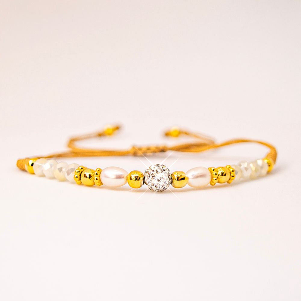 Add Nacar Flower Creme Thread Pearl Bracelet to the cart